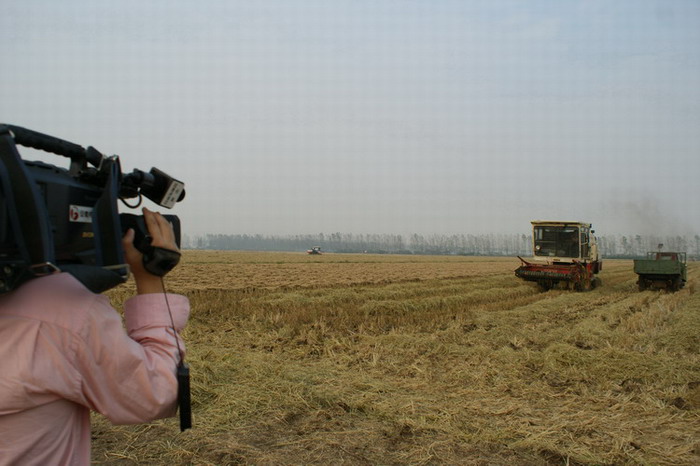 滁州电视台拍摄了农场秋季水稻喜获丰收的画面农业产业化发展成果。目前秋收已到关键阶段,各农管区紧紧抓住近日难得的晴好天气,不失时机地组织机械人力展开秋收会战,一望无际的农场田野里,割晒机、脱粒机、运粮车穿梭不歇抢收水稻,田间、场头到处呈现一派紧张繁忙的收获景象。预计该场今年1.7万亩优质机插秧水稻,平均单产可达550公斤、总产900万公斤。滁州台记者穿行在农场田野里,深深被那齐整整、金灿灿的大面积稻种田,那割晒脱粒的收获方式,那全面展开、组织有序的抢收场面所吸引,不由将一幅幅美丽画卷悉数录入镜头。他们还到农管区秋收现场、倮倮大米原粮基地、农作物育种中心进行了现场采访,全面了解农场农业生产管理、秋季水稻收成、新品种选育、倮倮大米质量追溯等情况。(夏庆芳)