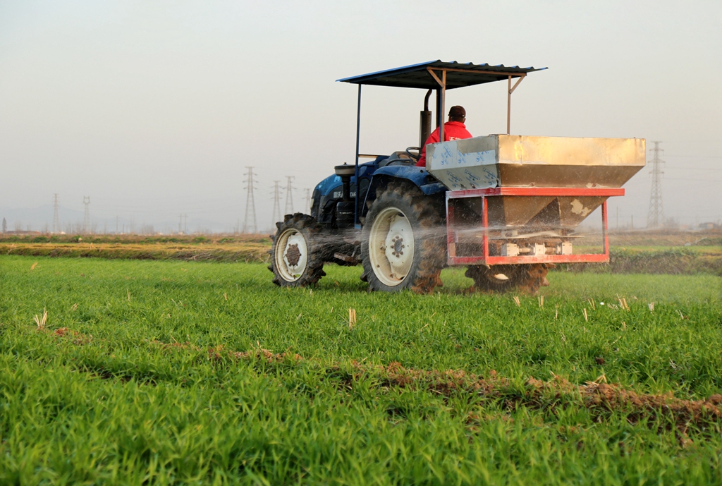 2月4日,华阳河农场公司组织职工为小麦追施返青肥(李 龙  摄)
